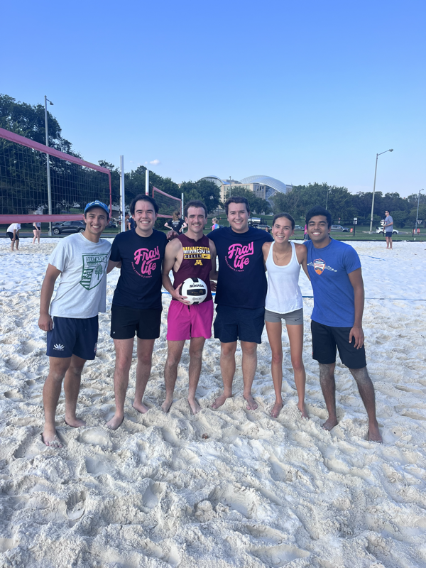Play beach volleyball with my friends on the National Mall -- I'm brushing up on my tennis skills, too!